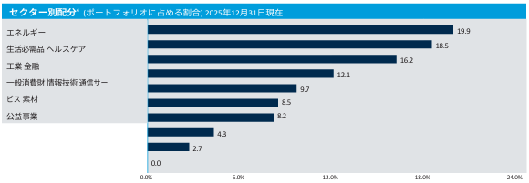 エネルギーや金融のような景気敏感セクターに偏ることなく、全体的にバランスのよいポートフォリオになっています。