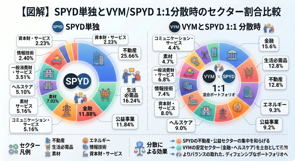 【参考:VYMとSPYDを1:1で組み合わせたセクター構成】